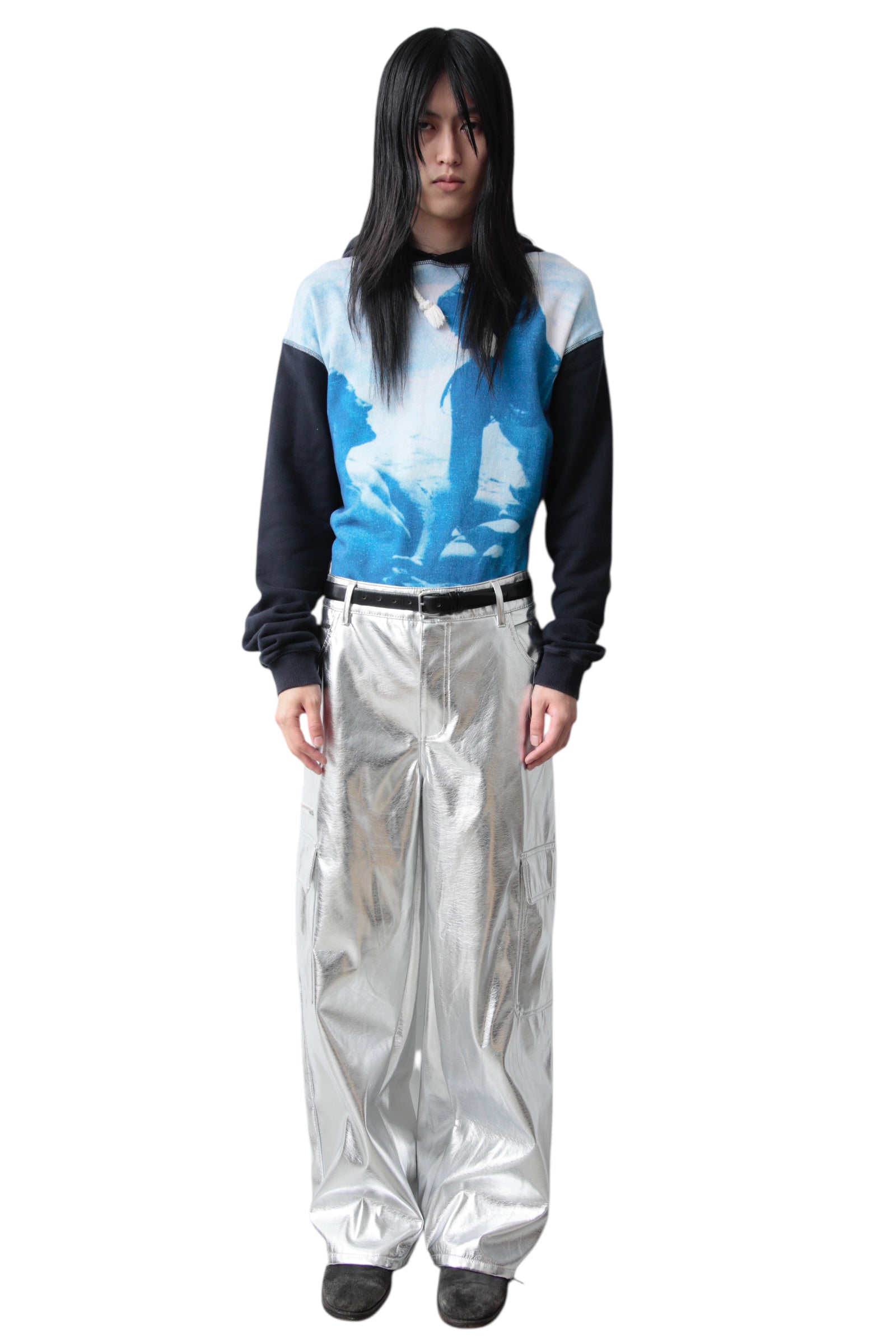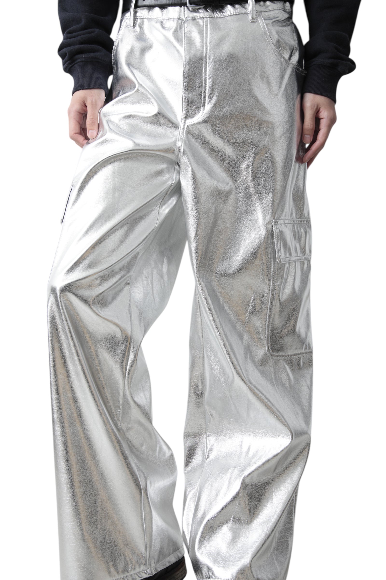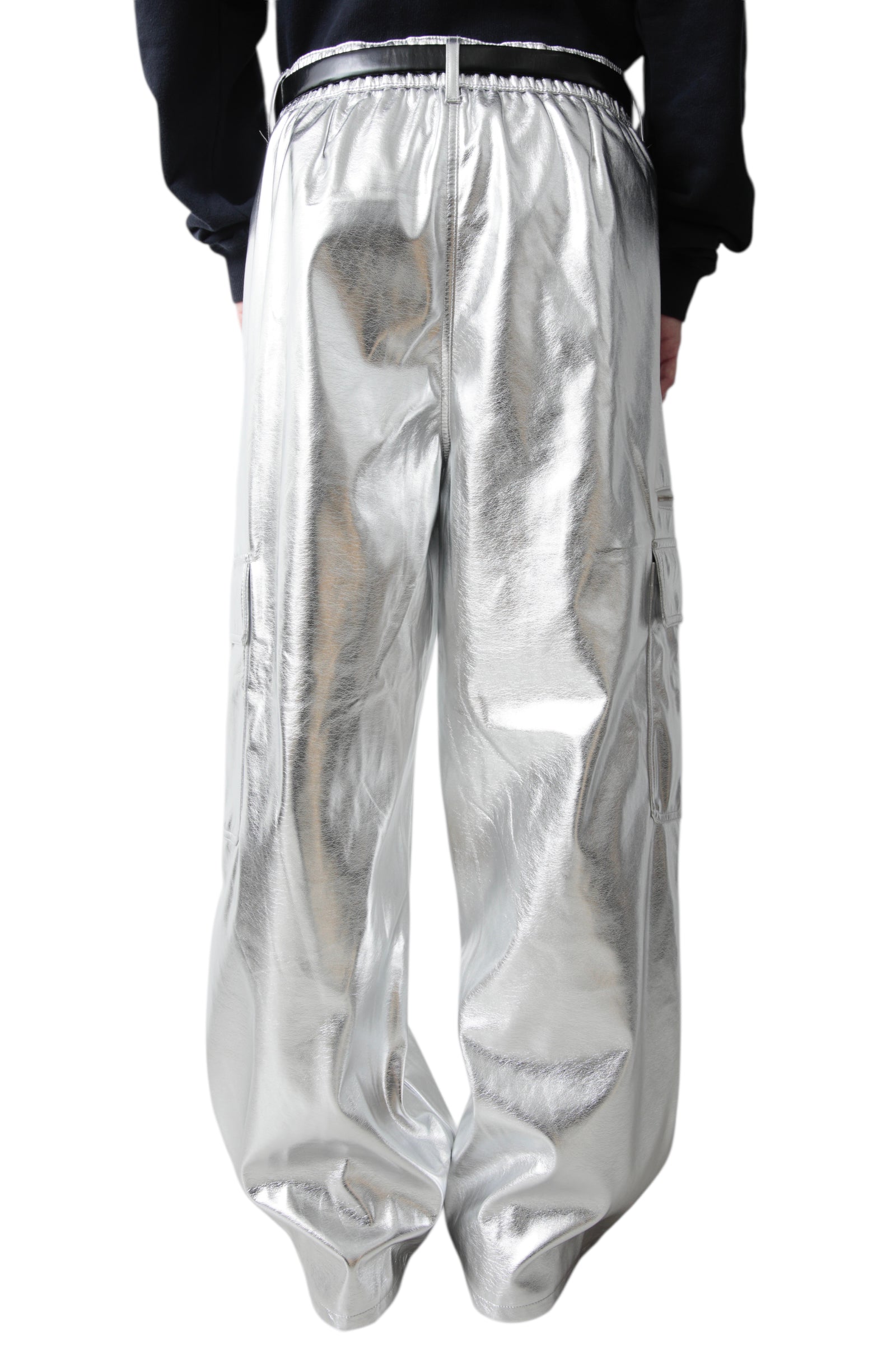 SILVER COATED WIDE CARGO PANTS