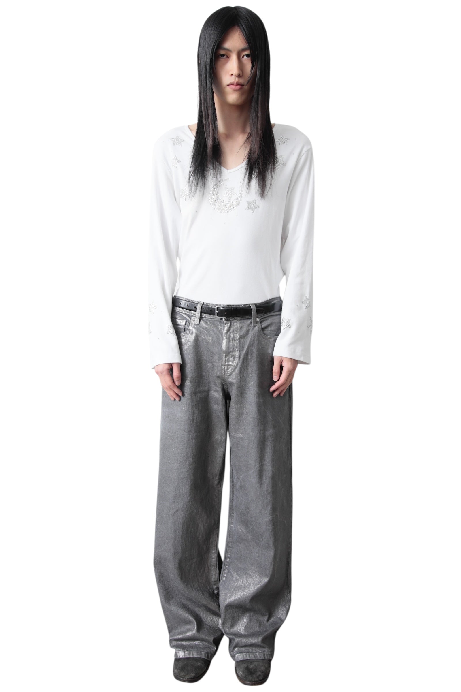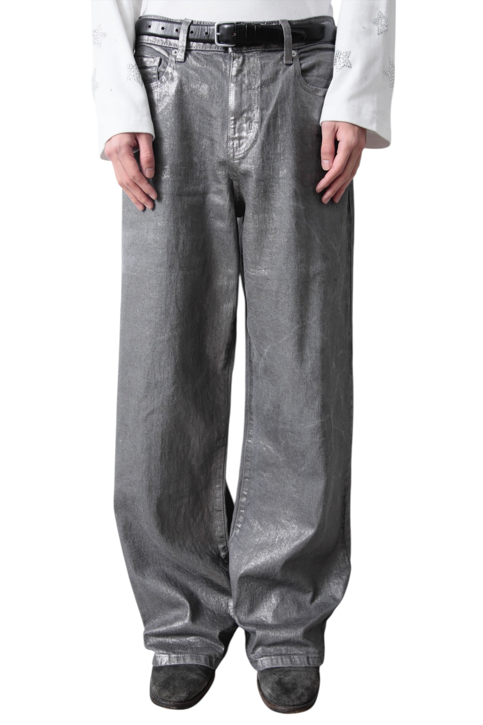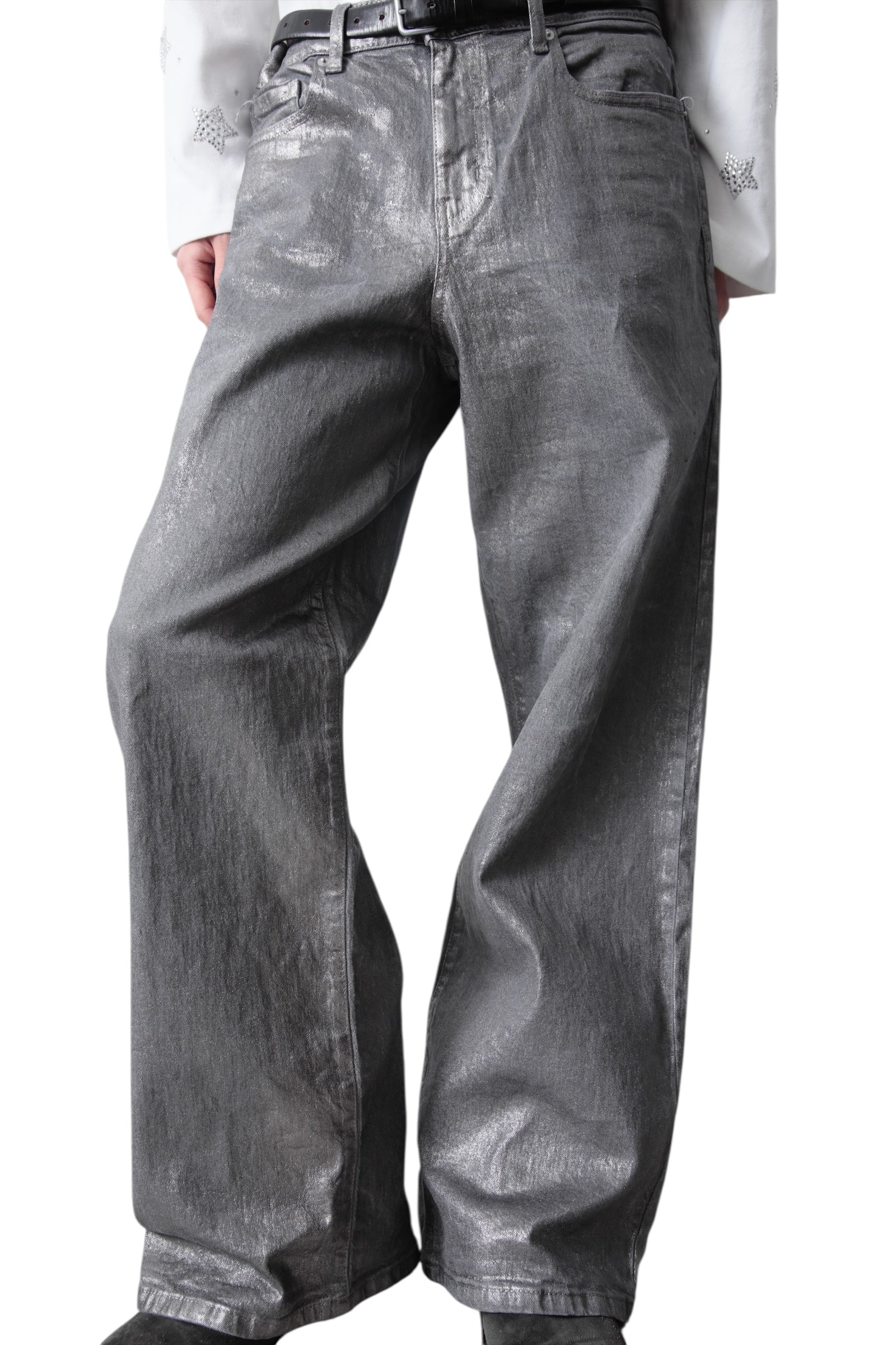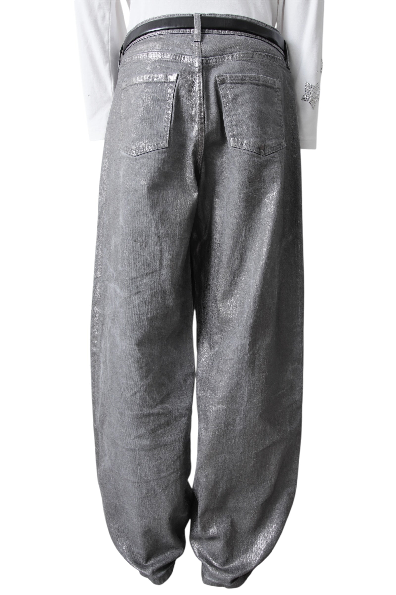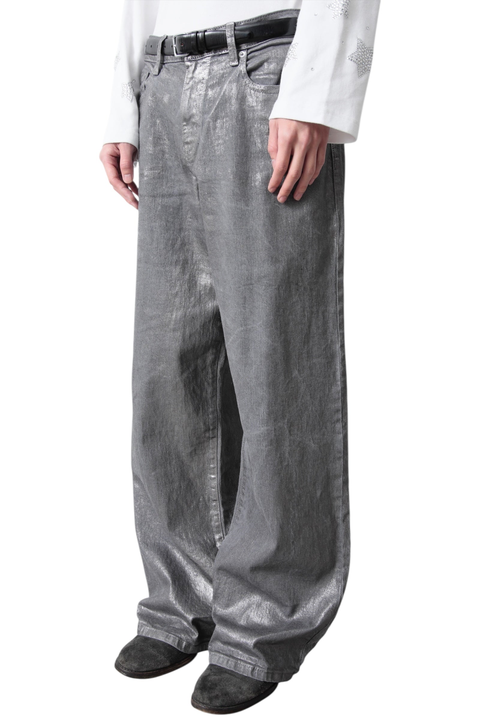 SILVER COATING BAGGY DENIM PANTS
