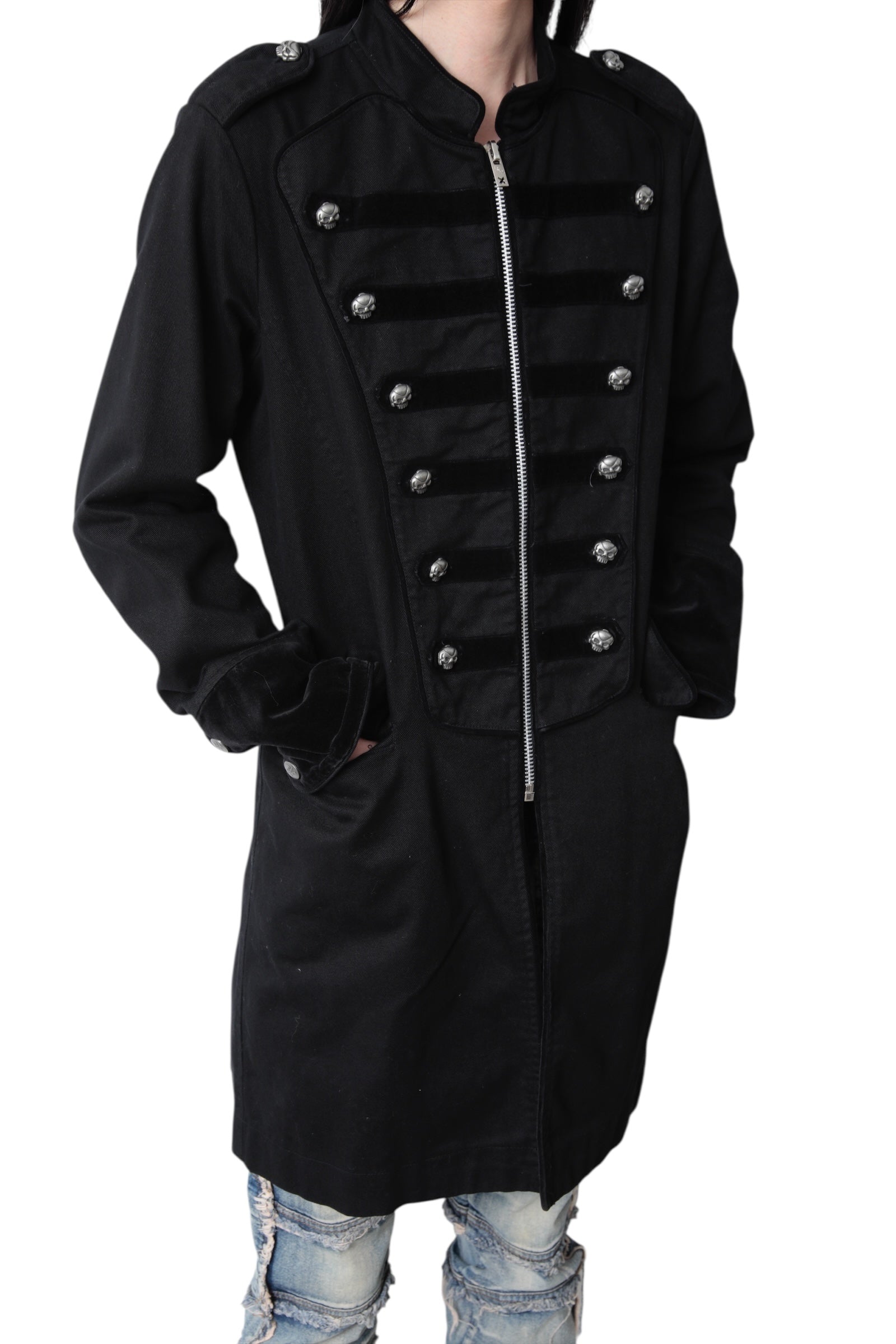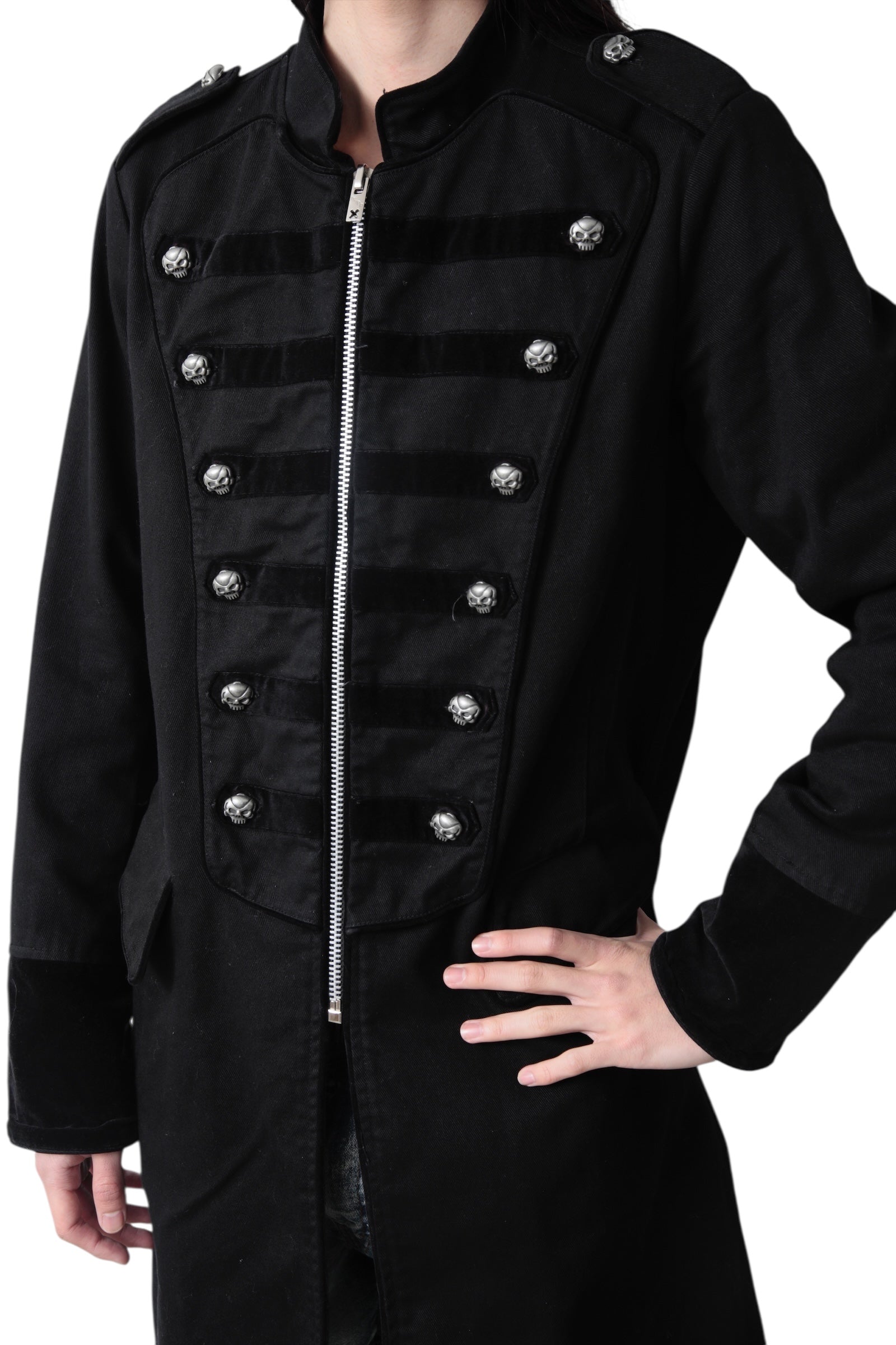 TRIPP NYC SKULL BUTTONS NAPOLEON ZIP COAT