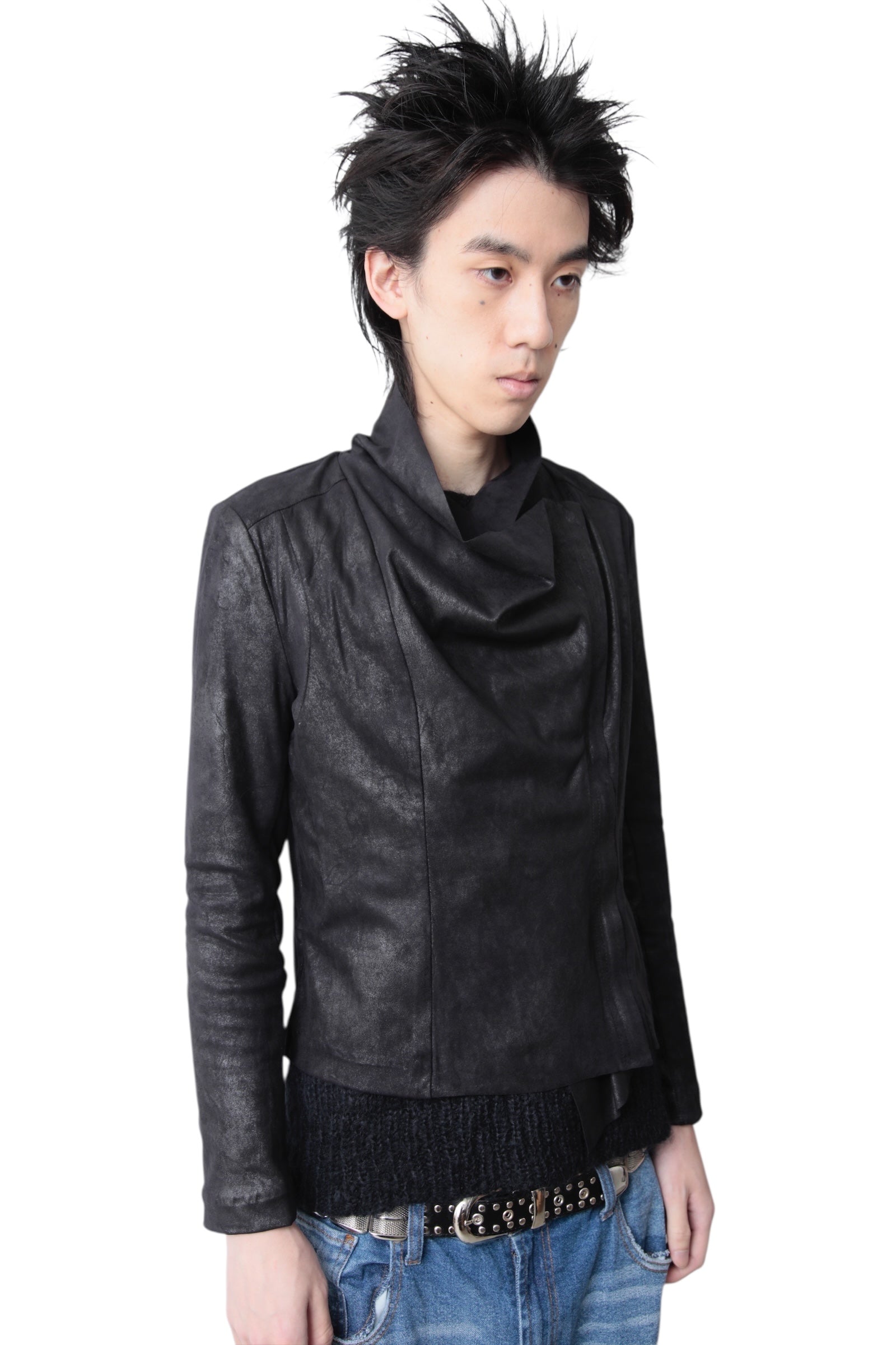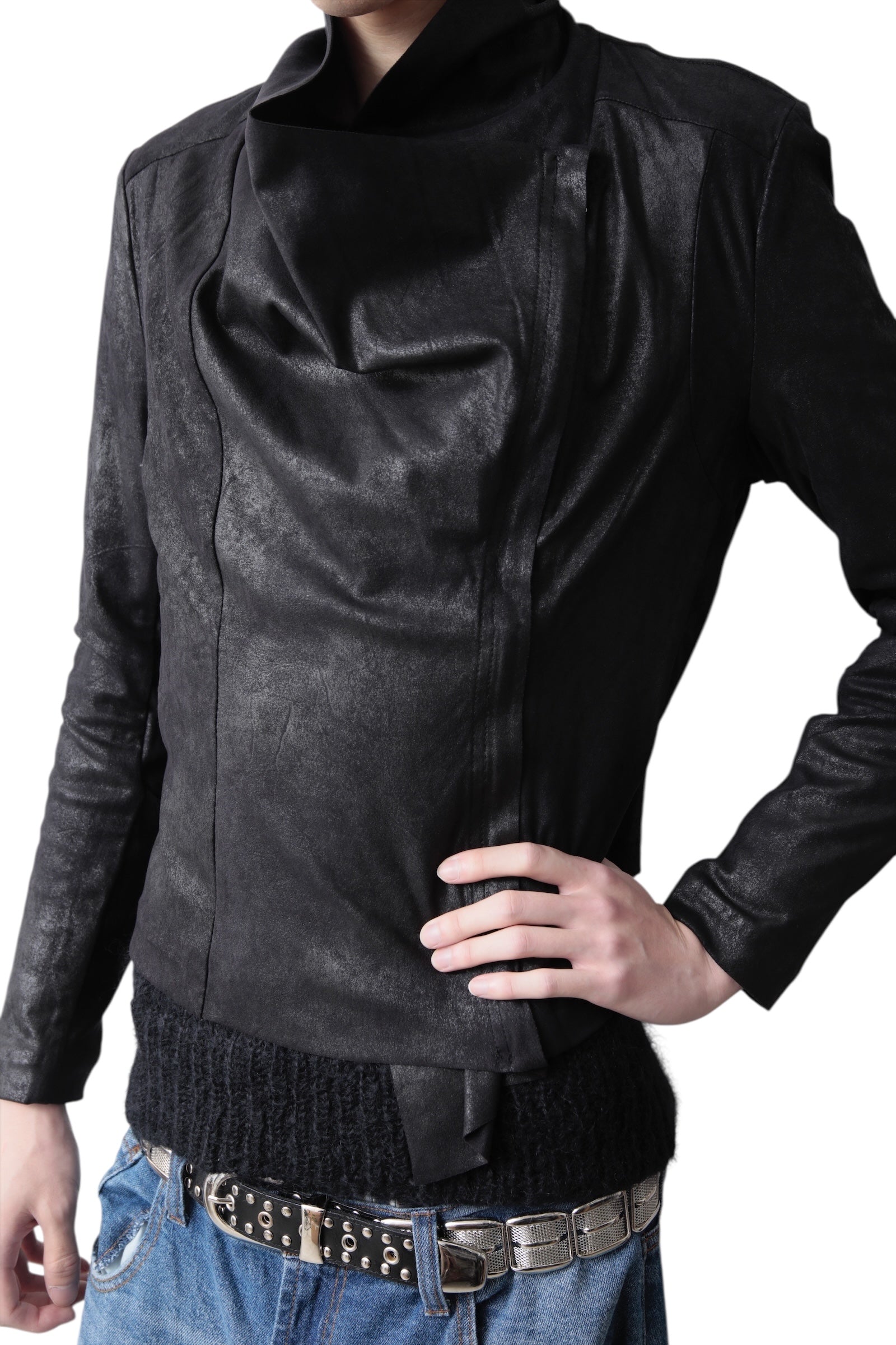 Asymmetric Texture Zip Blouse